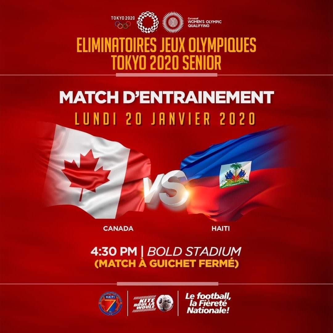 Match zanmitay Ayiti vs Canada lendi kap 20 janvye a 4h30 pm nan BOLD STADIUM pou preparasyon eliminatwa JO TOKYO 2020.Medam yo ap mete yo pre pou konpetisyon sa…swiv plis detay chak maten depil fe 8hr pou rive 9ham ak Coach Lucson. REPRESENTANT BOUL LA! YON KONTROL YON PASSE.